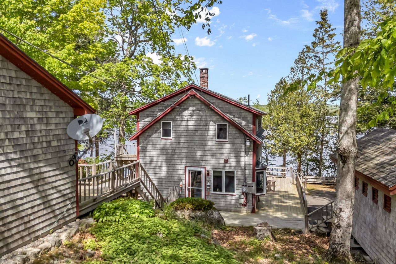 Come check out this beautiful home on Molasses Pond in Eastbrook Maine! All of this home and buildings were updated in 1985 with beautiful knotty pine, wrap around deck and so much more!! Escape to the peaceful shores of Molasses Pond, a spring-fed lake known for its clear water and natural beauty. This beautifully landscaped 2-bedroom, 1.5-bath home sits on a one-of-a-kind lot offering everything you need for waterfront living and more.This is the only property on the pond with a boathouse?complete with a winch and boat! Stone steps lead down to the water, where you'll find a dock already in place, perfect for swimming, boating, and soaking up the sunshine.Enjoy the outdoors from the expansive wrap-around decks, relax in the yard, or take in the views from your 3-car garage and freshly paved driveway (just 2 years old). A kids' cottage adds charm for the little ones, while a large wood building provides extra storage.Don't miss this rare opportunity to own a true waterfront gem on one of Maine's most desirable ponds.Contact me today for your private showing!