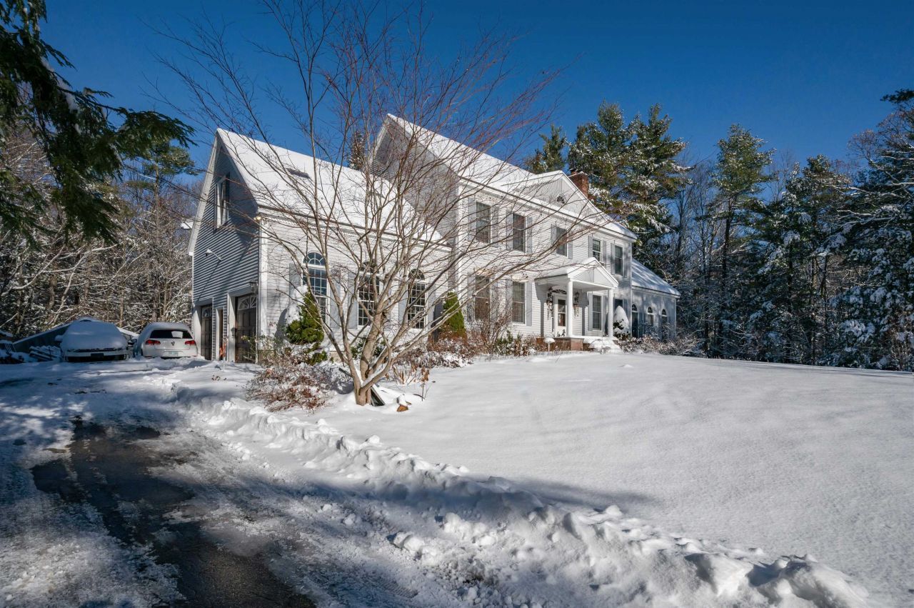 Beautifully maintained 4-bedroom Colonial set on 3.51 private acres in desirable Chester. This spacious home offers classic charm and flexible living options. The main level features an oversized dining room, a large first-floor library/office with custom built-ins, and a stunning step-down family room with Paladian windows that bring in abundant natural light. Enjoy two wood-burning insert fireplaces?one in the family room and one in the primary suite. Upstairs offers four generous bedrooms, including an extra-large room over the garage with potential to become a second primary suite, bonus room, or guest space. The lower level has potential space with separate egress but offers excellent potential for future customization or exploration of an ADU, subject to buyer due diligence and town approval. Outdoor living includes an oversized deck, above-ground pool, and fenced-in pet area. An oversized attached garage provides great space for vehicles, storage, or hobbyists. The roof is approximately 8 years old, offering added peace of mind. Set in a quiet, wooded location yet close to major routes, shopping, dining, and Pinkerton Academy, this property offers privacy, space, and the lifestyle buyers seek in Chester. A rare opportunity with room to grow. Open House Saturday, March 21st, 10:30-12