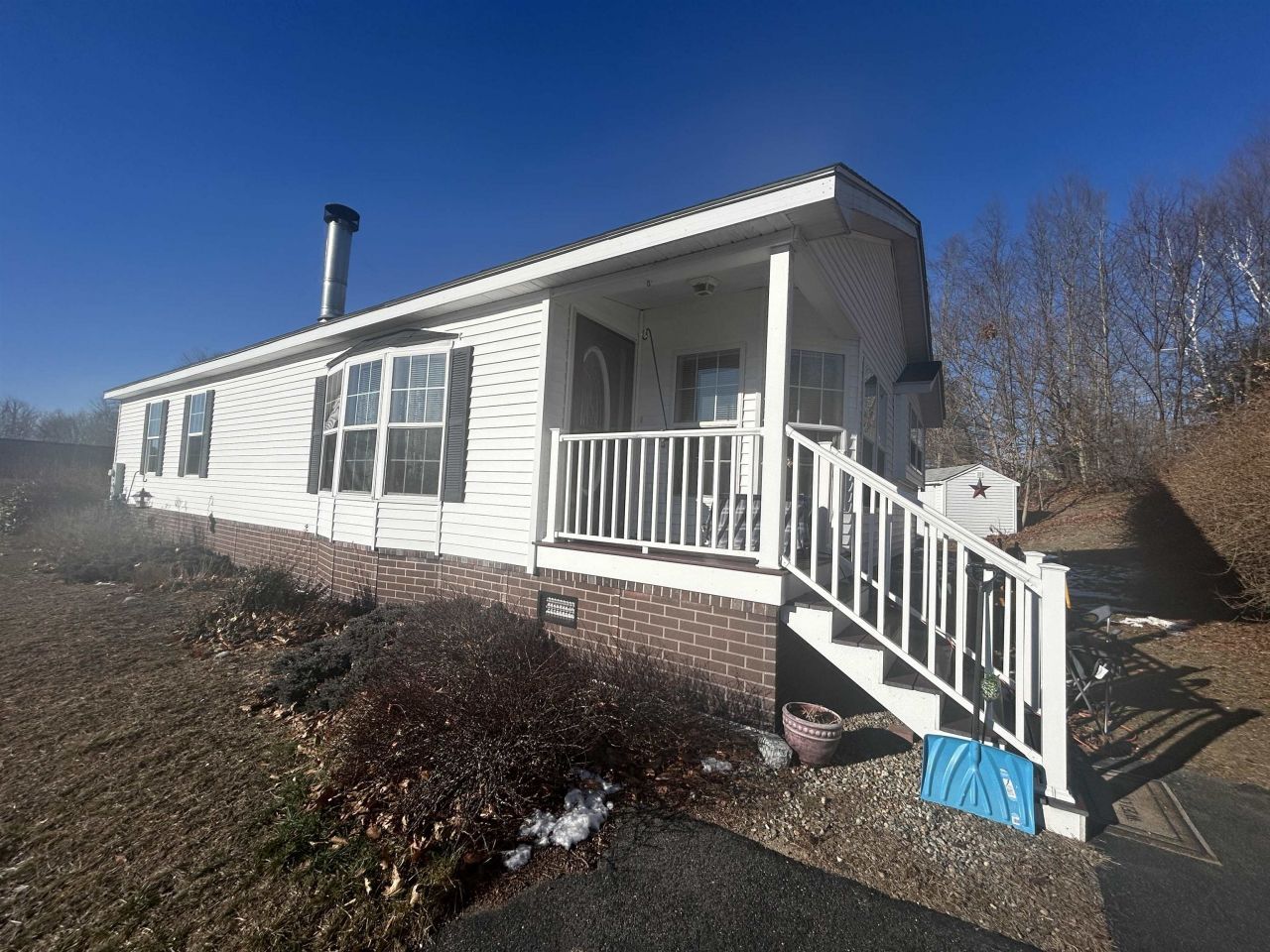 Beautiful Doublewide manufactured home! This is a gorgeous home with a wood burning fireplace in Living room and opens to the dining room and onto a 3 season sunroom with a heater! The kitchen is large and spacious with granite countertops. There is also a sunny breakfast nook in the kitchen with loads of windows. The primary bedroom has a huge bathroom with a soaking tub and a separate walk in shower. The quality is evident in this lovely home. The home has a full drywall interior! The exterior is well landscaped and has a private backyard with storage shed and wooded privacy. When you arrive at the home, you are greeted by a cute covered entry porch and the view from the front is of the town and mountains. This is quite the home!!
