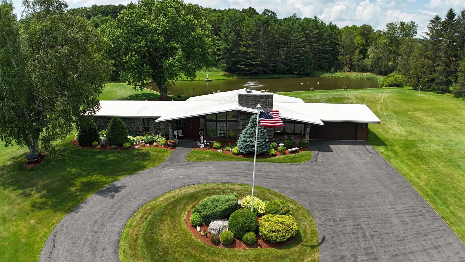 This exceptional Vermont property at 260 Morrison Road in Barre Town delivers privacy, character, and convenience in a more manageable setting. The striking 3-bedroom, one-level contemporary home blends native Vermont stone with walls of glass, perfectly framing sweeping mountain views. Set on 7 acres, the setting remains a peaceful retreat, highlighted by a spring-fed pond with a fountain tucked just off the backyard, ideal for quiet mornings or relaxed entertaining. A separate guest house adds flexibility for extended family, guests, or potential rental use. Additional features include a paved circular driveway, attached 2-car garage, and a finished walk-out lower level offering expanded living space. Located just minutes to Barre, Montpelier, and I-89, this property offers the best of both worlds, convenience and privacy in a classic Central Vermont setting.
