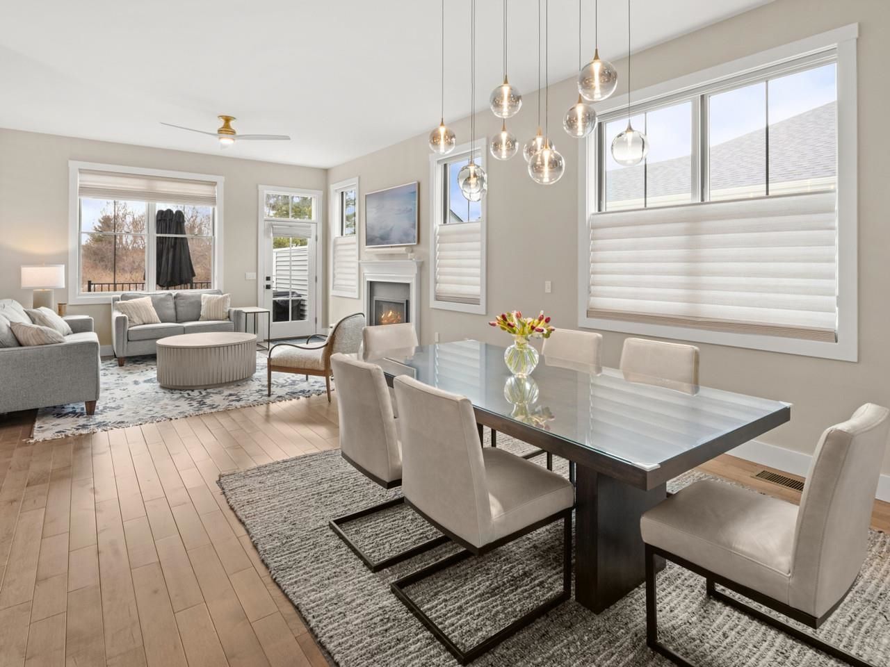 Enjoy easy living in this exceptional, barely lived in townhome in Shelburne's fantastic Kwiniaska Ridge. This stunning, 4-bedroom, 3.5 bath home includes a first-floor primary suite, 10-foot ceilings, oversized windows and wonderful natural light, plus beautiful upgrades, and custom finishes throughout. With amazing closet built-ins and cabinets in the mudroom, bathrooms, laundry and garage, this home shows like a model. The gorgeous kitchen includes high-end Dekton countertops, which are also in all the baths, plus stainless-steel appliances, and an extra layer of cabinets with glass doors and custom lighting. You'll love the open floor plan and first-floor office with French doors, and the upgraded, solid wood doors throughout. With a spacious family room/flex space upstairs with two more bedrooms and a full bath, there's space for everyone. The lower level includes a nicely finished rec room with garden size windows, a bedroom and full bath, plus a large, wonderful laundry room. Additional washer/dryer hookups are on the first floor. Enjoy southwest exposure from the composite-built deck and lovely blue stone patio with a view to the woods. Central AC. Don't miss this incredible townhome that sits just minutes from Lake Champlain, Shelburne Farms, and all the terrific amenities in Shelburne village, including restaurants, coffee shops, and the farmer's market. Just a 10-15-minute commute to downtown Burlington, UVM and the UVM Medical Center, and the airport.