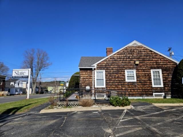 This well maintained 2000 sq foot office building ( includes rooms in the basement) has a large inviting reception area with a working fireplace, 2 spacious fully equiped offices, and a bathroom on the main floor with a total of approximately 1000 sq feet. This building was a bank at one time so it still has a drive up teller booth area. The partially finished basement offers 2 storage rooms, another bathroom and a small kitchen area. All has been well maintained throughout the years. Outside we have plenty of parking with an entrance from Sabattus St. at one end and an exit onto Spofford st. st the other end. Other extras include central air and a security system. This building has so much potential. Don't let this one slip by you.