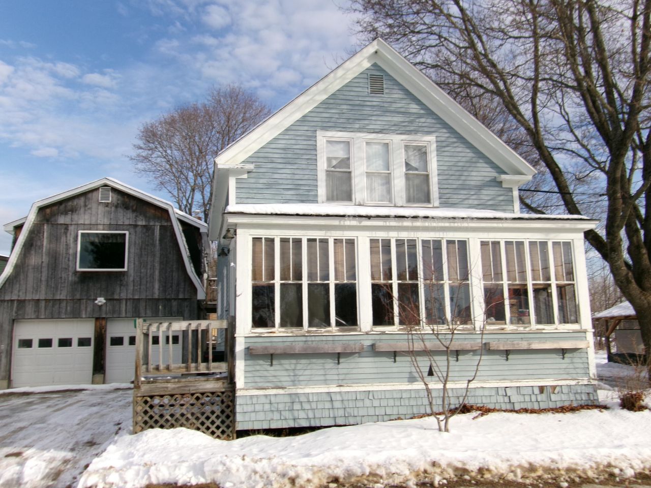 Charming, well-maintained 1400+ sq. ft. older home on a quiet dead-end street, just a short walk to downtown restaurants, library, grocery stores, and the scenic waterfront. Inside, you'll find a lovely eat-in kitchen with updated appliances, a dining room, a spacious enclosed sunporch, plus an office/bedroom and a bright, cozy den on the first floor. Hardwood and vinyl flooring throughout lend character to this older home. First and second floor bathrooms, as well as a washer and dryer hook-up located on the first floor for your convenience. The property includes a 2-car garage with an in-law apartment above, perfect for guests or potential rental income. Conveniently connected to town water and sewer. Lincoln is an all-seasons destination 45 minutes north of Bangor offering wooded walking trails, public beach, lakes with public boat launches, plus access to ATV and snowmobile trails.