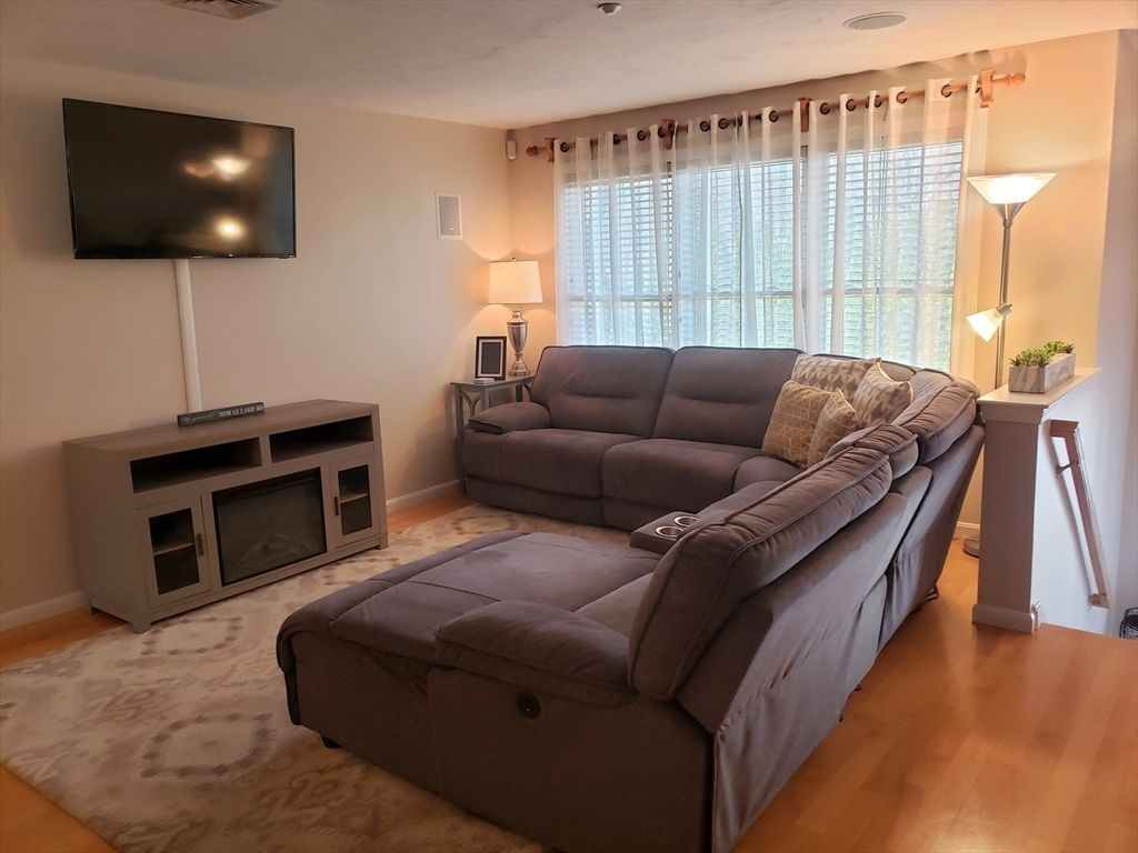 Beautifully kept townhome featuring 3 levels of living space. Open plan first-floor with maple hardwoods, living and dining areas, spacious kitchen with tons of workspace. Custom built maple cabinets, stainless appliances, breakfast bar & large pantry. The second floor offers two very good-sized bedrooms, one with hardwoods, the other with a balcony. The top floor is a large 3rd bedroom that could also be used as a family room, den or home office. The lowest level has laundry, a tandem 2 car garage and storage space. All appliances stay. Composite deck off kitchen, with stairs that lead to a grassy area and a wooded conservation space. Great amenities with central air, central vac, ample closet space and built in sound system speakers. Commuters dream with easy access to 95, 295, and 495. Also close to the train, downtown restaurants and lots of shopping options up and down route 1.