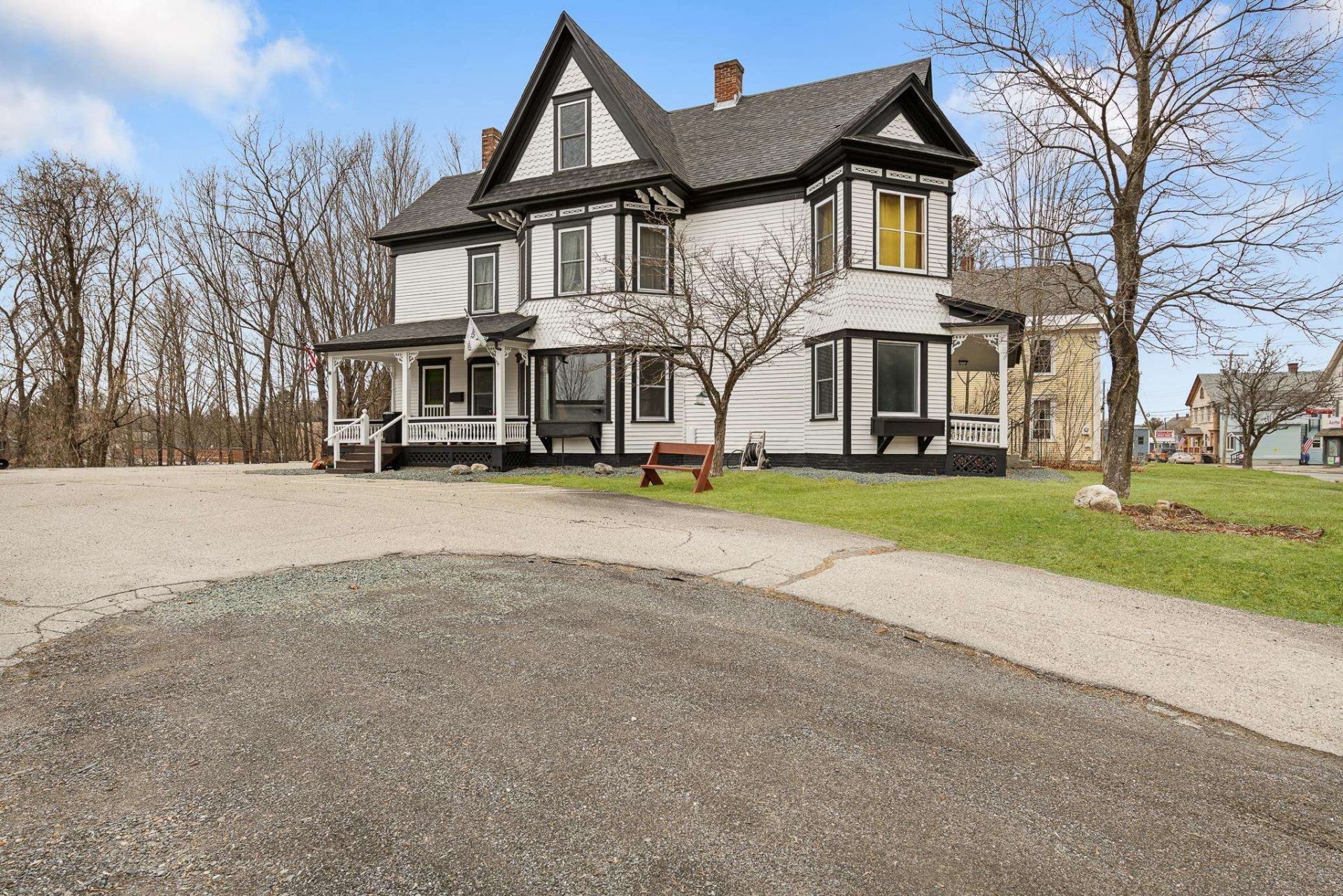 Beautiful circa-1902 in-town Colebrook home. This recently updated home offers 5+ bedrooms and 1.5 baths. This spacious property is filled with original character and timeless New England charm. Features include hardwood floors throughout, beautiful French doors, beadboard, built-ins, and inviting living spaces. Enjoy a cozy pellet stove hearth, perfect for relaxing evenings, along with a charming reading nook ideal for quiet moments. Elegant front entry way, covered porches provide welcoming spaces to enjoy morning coffee or unwind at the end of the day. Previously used as a storefront and office space, the property offers excellent flexibility for a home business, mixed-use living, or a potential bed & breakfast. A classic barn adds functionality and character, and there is plenty of off-street parking for residents and guests. A fabulous large home with loads of curb appeal and endless possibilities, all in a convenient in-town location close to local amenities and outdoor recreation. Lots of recent upgrades have been completed, including the heating system, electric service, windows, interior paint, exterior paint, kitchen and bathroom renovations, offering comfort and peace of mind while preserving the home's historic appeal.