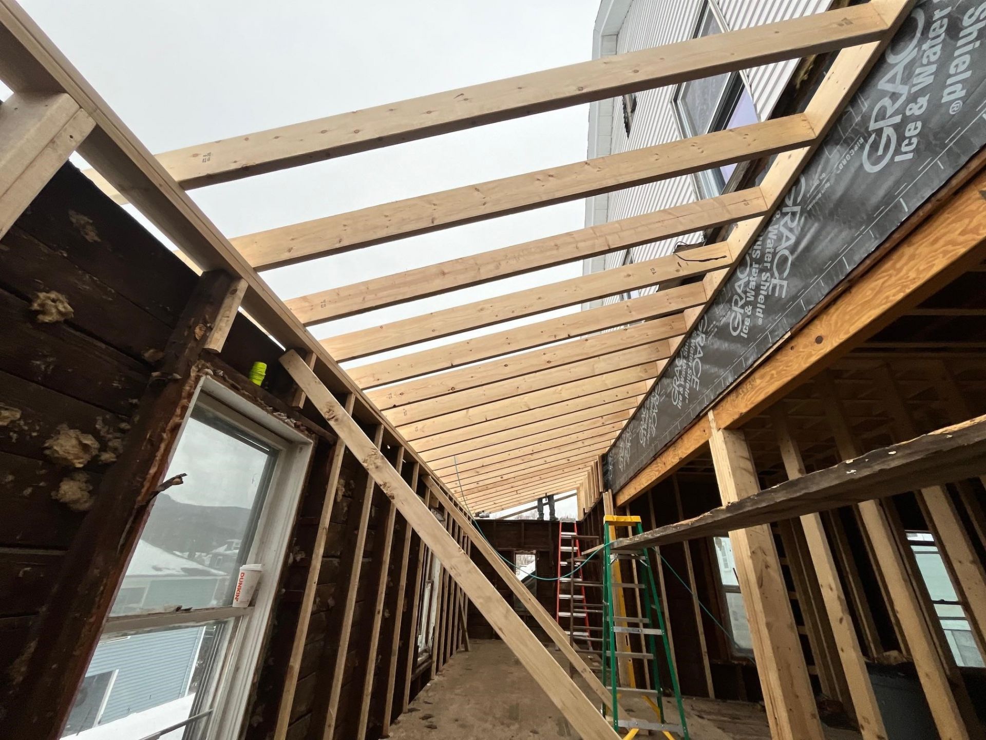 This building has been fully reframed and has passed framing inspection with the town. Major structural improvements are complete, including a full interior gut to the studs, installation of a new main carrying beam with new lally columns, new floor joists and subflooring throughout, and reconstruction of all interior partitions per plan. Both the front and rear roof sections have been rebuilt with new framing and sheathing. New windows have been installed with reworked openings to enhance natural light and improve each unit's layout. With the heavy lifting done, this property is ready for you to finish your way?an exceptional long-term investment opportunity.